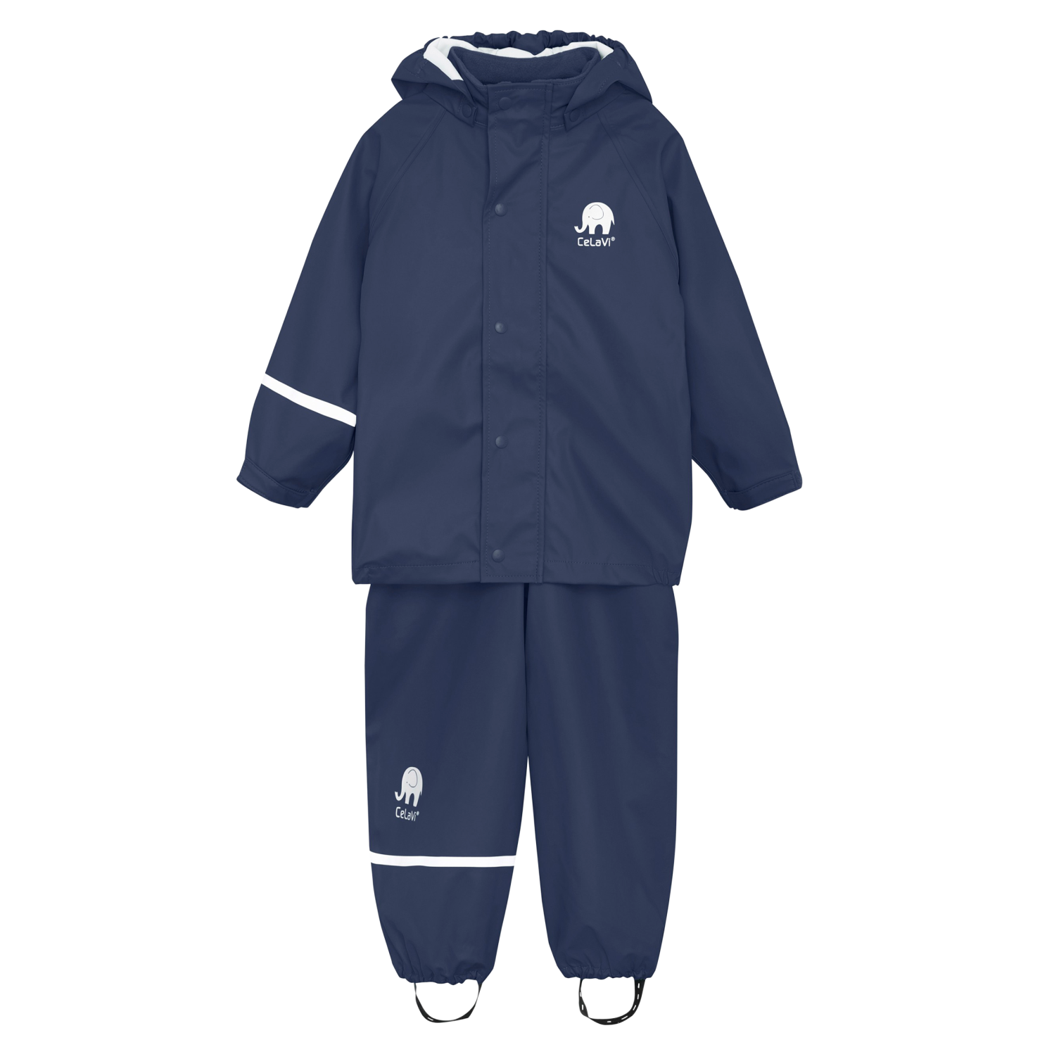 Vi har fundet Celavi Børne Regnsæt Dark Navy fra Celavi hos dansk i kategorien . To delt regnsæt fra CeLaVi. Jakken har lynlås og vindstolpen lukkes med trykknapper. Regnbukserne har seler i str. 70-100 og har elastik i taljen i str. 110-140. Sættet er 100 vind- og vandtæt med et vandsøjletryk på 5000 mm. Den aftagelige hætte sidder